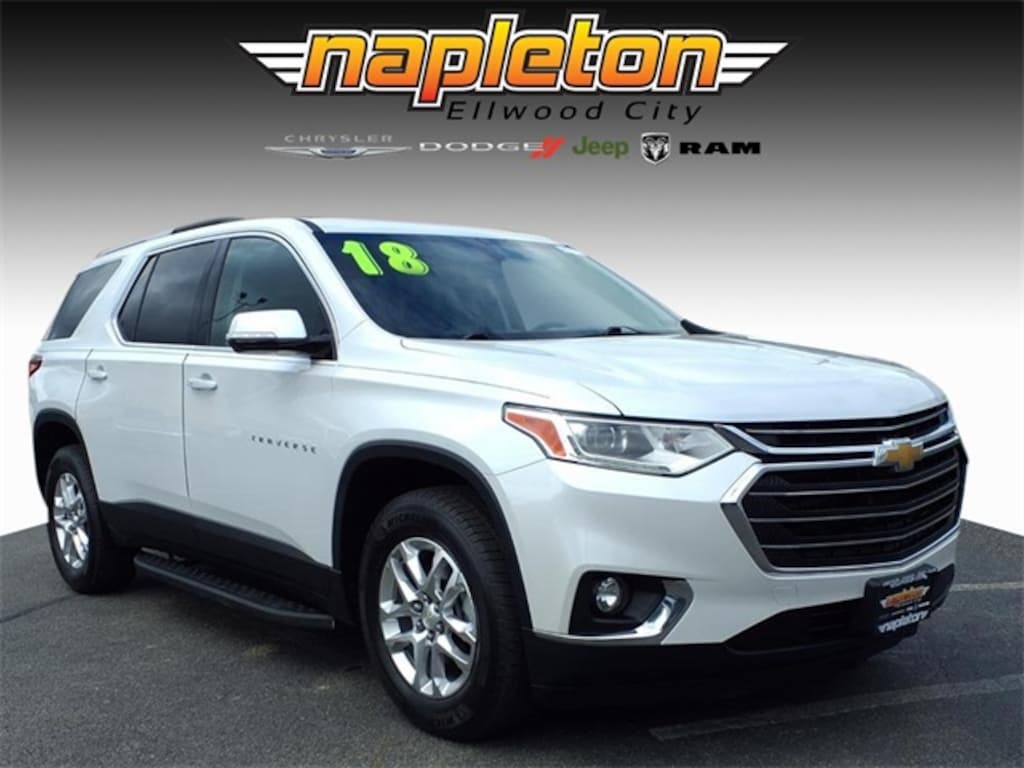 This Traverse is well equipped with Front License Plate Bracket Mounting Package, Preferred Equipment Group 1LT, 3.49 Axle Ratio, 3rd row seats: split-bench, 4-Wheel Disc Brakes, 6 Speakers, 7-Passenger Seating (2-2-3 Seating Configuration), ABS brakes, Air Conditioning, Alloy wheels, AM/FM radio: SiriusXM, Apple CarPlay/Android Auto, Automatic temperature control, Brake assist, Bumpers: body-color, Compass, Delay-off headlights, Driver door bin, Driver vanity mirror, Dual front impact airbags, Dual front side impact airbags, Electronic Stability Control, Emergency communication system: OnStar Guidance, Exterior Parking Camera Rear, Four wheel independent suspension, Front anti-roll bar, Front Bucket Seats, Front Center Armrest, Front dual zone A/C, Front fog lights, Front reading lights, Fully automatic headlights, Garage door transmitter, Heated door mirrors, Heated front seats, High-Intensity Discharge Headlights, Illuminated entry, Low tire pressure warning, Occupant sensing airbag, Outside temperature display, Overhead airbag, Overhead console, Panic alarm, Passenger door bin, Passenger vanity mirror, Power door mirrors, Power driver seat, Power Liftgate, Power steering, Power windows, Premium Cloth Seat Trim, Radio data system, Radio: Chevrolet MyLink AM/FM Stereo w/8" Screen, Rear air conditioning, Rear anti-roll bar, Rear reading lights, Rear window defroster, Rear window wiper, Remote keyless entry, Roof Rack Cross Rails (LPO), Roof rack: rails only, Security system, SiriusXM Satellite Radio, Speed control, Speed-sensing steering, Spoiler, Steering wheel mounted audio controls, Tachometer, Telescoping steering wheel, Tilt steering wheel, Traction control, Trip computer, Turn signal indicator mirrors, Variably intermittent wipers, Voltmeter, and Wheels: 18" Bright Silver Machined Painted Alum.
