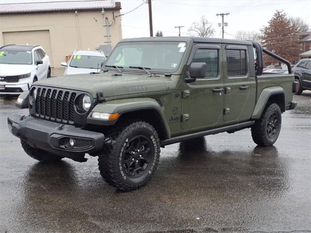 Recent Arrival! CARFAX One-Owner. Sarge Green Clearcoat 2021 Jeep Gladiator 4D Crew Cab Willys 3.6L V6 24V VVT 4WD