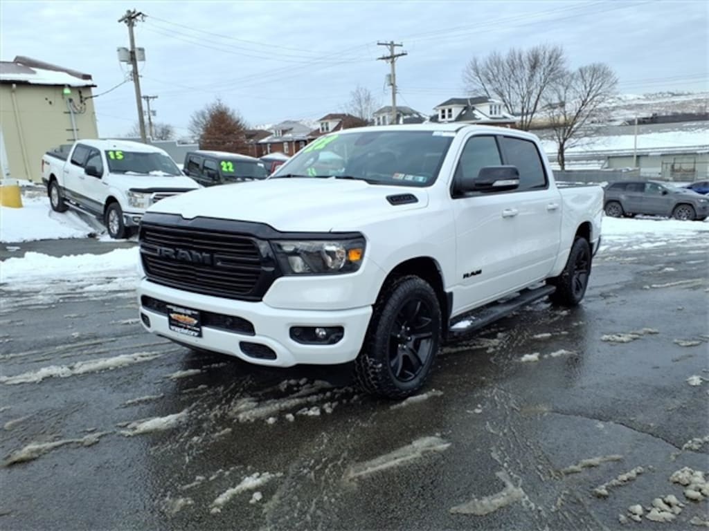 This 1500 is well equipped with Big Horn Level 2 Equipment Group (115V Auxiliary Power Outlet, 400W Inverter, and ParkSense Front/Rear Park Assist w/Stop), Night Edition (3 Rear Seat Head Restraints, 4 Way Front Headrests, Anti-Spin Differential Rear Axle, Deluxe Cloth Bucket Seats, Front Seat Back Map Pockets, Rear 60/40 Folding Seat, and Wheels: 20" x 9.0" Premium Paint/Polished), Quick Order Package 27Z Big Horn, 4-Wheel Disc Brakes, 40/20/40 Split Bench Seat, 48V Belt Starter Generator, 6 Speakers, ABS brakes, Air Conditioning, Alloy wheels, AM/FM radio, Black Exterior Mirrors, Brake assist, Bumpers: chrome, Cloth Bench Seat, Compass, Delay-off headlights, Dome Dual LED Reading Lamp, Driver door bin, Dual front impact airbags, Dual front side impact airbags, Dual-Pane Panoramic Sunroof, Electronic Stability Control, Front anti-roll bar, Front Center Armrest w/Storage, Front fog lights, Front reading lights, Front wheel independent suspension, Fully automatic headlights, GPS Antenna Input, Heated door mirrors, Illuminated entry, Integrated Voice Command w/Bluetooth, Leather steering wheel, Low tire pressure warning, Occupant sensing airbag, Outside temperature display, Overhead airbag, Overhead console, Overhead LED Lamps, Panic alarm, ParkView Rear Back-Up Camera, Passenger door bin, Passenger vanity mirror, Power door mirrors, Power steering, Power windows, Premium Overhead Console, Radio data system, Radio: Uconnect 3 w/5" Display, Radio: Uconnect 4 w/8.4" Display, Rear anti-roll bar, Rear seat center armrest, Rear step bumper, Rear Underseat Compartment Storage, Rear Wheelhouse Liners, Remote keyless entry, Remote Start System, Speed control, Split folding rear seat, Steering wheel mounted audio controls, Tachometer, Telescoping steering wheel, Tilt steering wheel, Traction control, Trailer Brake Control, Trip computer, Variably intermittent wipers, Voltmeter, and Wheels: 18" x 8" Cast-Aluminum Painted.