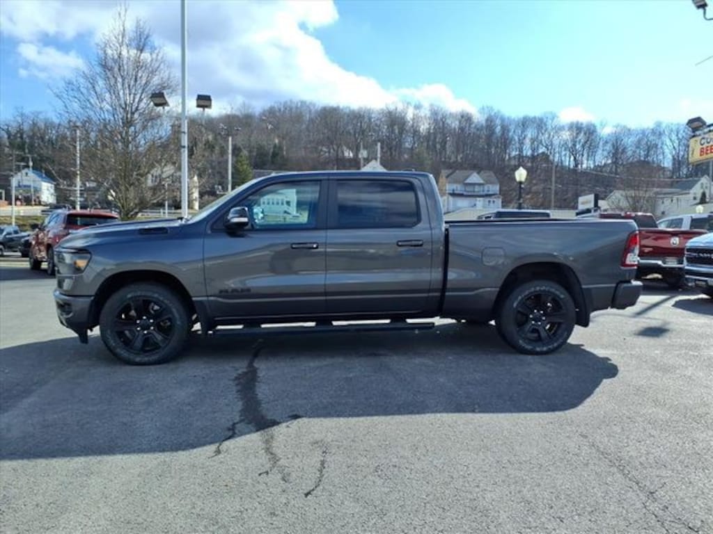 This 1500 is well equipped with Big Horn Level 2 Equipment Group (115V Auxiliary Power Outlet, 115V Auxiliary Rear Power Outlet, 2nd Row In Floor Storage Bins, 400W Inverter, 4G LTE Wi-Fi Hot Spot, 8.4" Touchscreen Display, Air Conditioning ATC w/Dual Zone Control, Apple CarPlay, Auto-Dimming Exterior Driver Mirror, Auto-Dimming Rear-View Mirror, Black Exterior Mirrors, Black Premium Power Mirrors, Bluetooth Handsfree Phone & Audio, Class IV Receiver Hitch, Cluster 7.0" TFT Color Display, Connectivity - US/Canada, Convex Wide-Angle Mirror Insert, Exterior Mirrors Courtesy Lamps, Exterior Mirrors w/Heating Element, Exterior Mirrors w/Supplemental Signals, For Details, Visit DriveUconnect.com, Global Telematics Box Module (TBM), Glove Box Lamp, Google Android Auto, GPS Antenna Input, Heated Front Seats, Heated Steering Wheel, Integrated Center Stack Radio, Media Hub w/2 Charge Only USBs, ParkSense Front/Rear Park Assist w/Stop, Power 2-Way Driver Lumbar Adjust, Power 8-Way Driver Seat, Power Adjustable Pedals, Power-Folding Mirrors, Radio: Uconnect 5 W w/8.4" Display, Rear Dome w/On/Off Switch Lamp, Rear Power Sliding Window, Rear Window Defroster, Remote Start System, Security Alarm, SiriusXM Radio Service, SiriusXM Satellite Radio, Sun Visors w/Illuminated Vanity Mirrors, Universal Garage Door Opener, and USB Host Flip), Level 1 Safety Group (Advanced Brake Assist, Cluster 3.5" TFT Color Display, Full Speed Forward Collision Warning Plus, Lane Keep Assist, and Pedestrian Emergency Braking), Night Edition (3 Rear Seat Head Restraints, 4 Way Front Headrests, Anti-Spin Differential Rear Axle, Black Exterior Truck Badging, Black Headlamp Bezels, Black Interior Accents, Body Color Front Bumper, Body Color Rear Bumper w/Step Pads, Bucket Seats, Delete LED Lamp - Floor Console Bin, Deluxe Cloth Bucket Seats, Dual Exhaust w/Black Tips, Front Seat Back Map Pockets, Full Length Floor Console, Manual Adjust 4-Way Front Passenger Seat, Rear 60/40 Folding Seat, Rear Center Armrest, and Wheels: 20" x 9.0" Premium Paint/Polished), Night Edition (DISC), Quick Order Package 27Z Big Horn, 3.21 Rear Axle Ratio, 4-Wheel Disc Brakes, 48V Belt Starter Generator, 6 Speakers, ABS brakes, Air Conditioning, Alloy wheels, AM/FM radio, Brake assist, Bumpers: chrome, Cloth Bench Seat, Compass, Connected Services Delete Credit, Delay-off headlights, Driver door bin, Dual front impact airbags, Dual front side impact airbags, Electronic Stability Control, Emergency communication system: SiriusXM Guardian, Front anti-roll bar, Front Center Armrest w/Storage, Front fog lights, Front reading lights, Front wheel independent suspension, Fully automatic headlights, Heated door mirrors, Heavy-Duty Engine Cooling, Illuminated entry, Integrated Voice Command w/Bluetooth, Leather steering wheel, Low tire pressure warning, MOPAR Front & Rear Rubber Floor Mats, Occupant sensing airbag, Outside temperature display, Overhead airbag, Overhead console, Panic alarm, ParkView Rear Back-Up Camera, Passenger door bin, Passenger vanity mirror, Power door mirrors, Power steering, Power windows, Radio data system, Radio: Uconnect 3 w/5" Display, Rear anti-roll bar, Rear seat center armrest, Rear step bumper, Rear Wheelhouse Liners, Remote keyless entry, Speed control, Split folding rear seat, Steering wheel mounted audio controls, Tachometer, Telescoping steering wheel, Tilt steering wheel, Traction control, Trailer Brake Control, Trip computer, Variably intermittent wipers, Voltmeter, and Wheels: 18" x 8" Cast-Aluminum Painted.