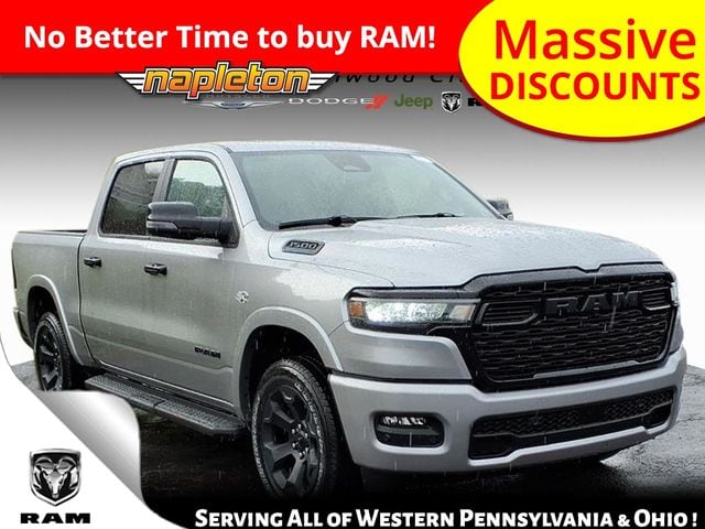 This 1500 is well equipped with Bed Utility Group (Exterior 115V AC Outlet, MOPAR 4 Adjustable Cargo Tie-Down Hooks, MOPAR Spray in Bedliner, and Pick-Up Box Lighting), Big Horn Level 2 Equipment Group (115V Auxiliary Power Outlet, 115V Auxiliary Rear Power Outlet, 12" Touchscreen Display, 2nd Row in Floor Storage Bins, 3 Rear Seat Head Restraints, 4 Way Front Headrests, 400W Inverter, 4G LTE Wi-Fi Hot Spot, 9 Amplified Speakers with Subwoofer, Air Conditioning ATC with Dual Zone Control, Apple CarPlay, Auto Power-Folding Mirrors, Auto-Dimming Exterior Driver Mirror, Auto-Dimming Rear-View Mirror, Black Exterior Mirrors, Black Premium Power Mirrors, Body Color Fender Flares, Bucket Seats, Center Console Parts Module, Cluster 7.0" TFT Color Display, Configurable Drive Mode, Connected Travel and Traffic Services, Connectivity - US/Canada, Convex Wide-Angle Exterior Mirror Insert, Deluxe Cloth Bucket Seats, Disassociated Touchscreen Display, Exterior Mirrors Courtesy Lamps, Exterior Mirrors with Heating Element, Exterior Mirrors with Supplemental Signals, Front Seat Back Map Pockets, Full Length Floor Console, Global Telematics Box Module, Glove Box Lamp, Google Android Auto, GPS Antenna Input, GPS Navigation, HD Radio, Heated Front Seats, Heated Steering Wheel, Integrated Center Stack Radio, Integrated Voice Command with Bluetooth, Leather Wrapped Steering Wheel, LED Dome Lamp with on/Off Switch, LED Footwell Lighting, Manual Adjust 4-Way Front Passenger Seat, Media Hub with 2 Charge Only USBs, Overhead LED Lamps, Power 2-Way Driver Lumbar Adjust, Power Adjust 8-Way Driver Seat, Power Adjustable Pedals, Premium Overhead Console, Radio: Uconnect 5 Navigation with 12.0" Display, Rear 60/40 Folding Seat, Rear Center Armrest, Rear Power Sliding Window, Rear Window Defroster, Remote Tailgate Release, Security Alarm, SiriusXM Radio Service, SiriusXM with 360L, Steering Wheel Mounted Audio Controls, Sun Visors with Illuminated Vanity Mirrors, Universal Garage Door Opener, and USB Host Flip), Night Edition (Accent Color Door Handles, Accent Color Premium Power Mirrors, Accent Color Tailgate Handle, Anti-Spin Differential Rear Axle, Black Exterior Truck Badging, Black Headlamp Bezels, Black Interior Accents, Black Painted Exterior Mirrors Caps, Black Tail Lamp Bezels, Body Color Front Bumper, Body Color Rear Bumper with Step Pads, Dual Exhaust with Black Tips, Grille Black Surround Black Mesh, RAM Grille Badge - Black, and Wheels: 20" x 9.0" Aluminum Painted Clad), Quick Order Package 27Z Big Horn, 33 Gallon Fuel Tank, 4-Wheel Disc Brakes, 48V Belt Starter Generator, 6 Speakers, ABS brakes, Air Conditioning, Alloy wheels, AM/FM radio, Apple CarPlay/Android Auto, Auto High-beam Headlights, Brake assist, Bumpers: chrome, Cloth Bucket Seats, Cluster 12" TFT Color Display, Compass, Delay-off headlights, Dome Dual LED Reading Lamp, Driver door bin, Dual front impact airbags, Dual front side impact airbags, Dual-Pane Panoramic Sunroof, Electronic Stability Control, Front anti-roll bar, Front Bucket Seats, Front Center Armrest w/Storage, Front fog lights, Front License Plate Bracket, Front reading lights, Front wheel independent suspension, Fully automatic headlights, Heated door mirrors, Illuminated entry, Low tire pressure warning, Manual Adjust 4-Way Driver Seat, Manual Folding Exterior Mirrors, Mopar Black Tubular Side Steps, MOPAR Front and Rear Rubber Floor Mats, Occupant sensing airbag, Outside temperature display, Overhead airbag, Overhead console, Panic alarm, ParkView Rear Back-Up Camera, Passenger door bin, Passenger vanity mirror, Power door mirrors, Power steering, Power windows, Price includes all guaranteed and qualifying incentives. See dealer for details.$2000 - 2026 National SFS Lease Loyalty Bonus Cash . Exp. 03/31/2026 $3500 - 2026 National Retail Consumer Cash . Exp. 03/3