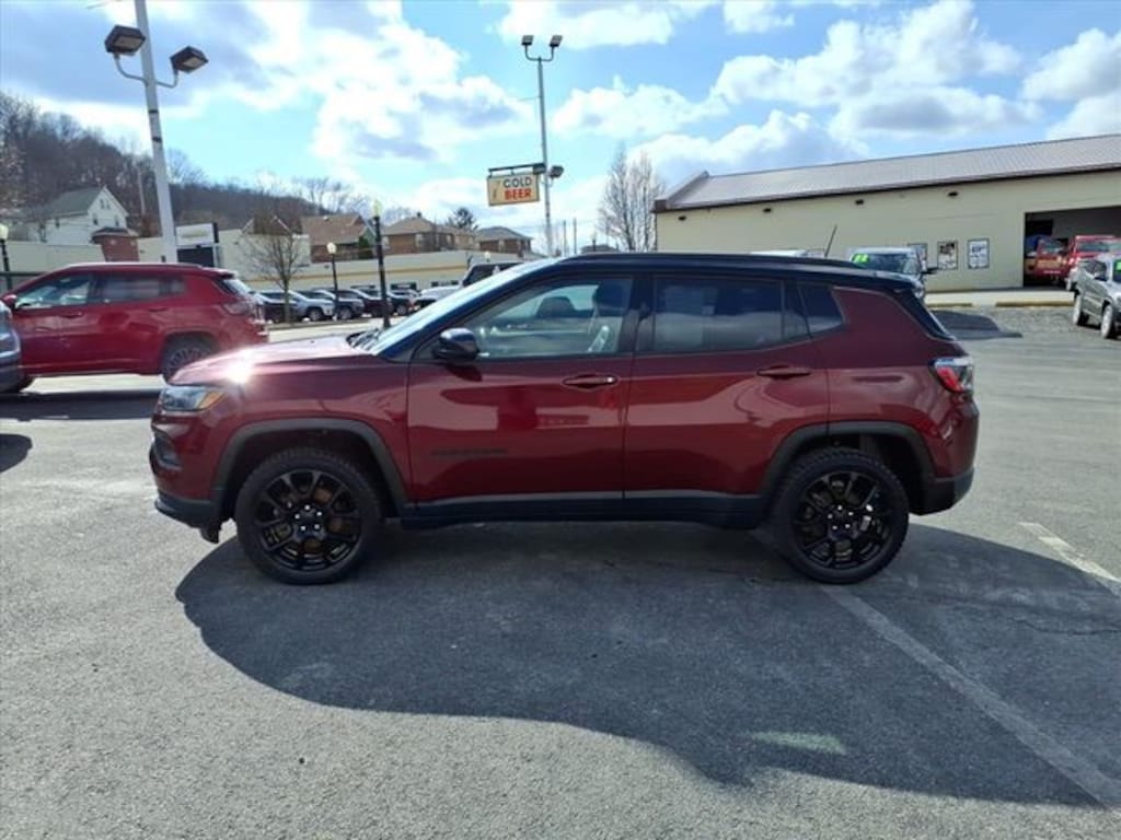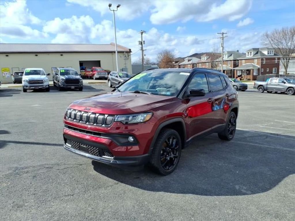 This Compass is well equipped with Convenience Group (115V Auxiliary Power Outlet, 2nd Row USB Type A/C Charge Only, Air Conditioning ATC w/Dual Zone Control, All-Season Floor Mats, Auto-Dimming Rear-View Mirror, Foot Activated Open 'N Go Liftgate, Heated Front Seats, Heated Steering Wheel, Humidity Sensor, Leather Wrapped Steering Wheel, Power Adjust 8-Way Driver Seat, Power Liftgate, Remote Start System, Reversible Carpet/Vinyl Cargo Mat, Security Alarm, Universal Garage Door Opener, Vehicle Information Center, and Windshield Wiper De-Icer), Quick Order Package 2GB Altitude (Altitude Special Edition, Black Day Light Opening Moldings, Black Headliner, Black Roof, Bright Exhaust Tip, Gloss Black Badges, Gloss Black Grille & Crosshairs, Gloss Black Lower Rear Fascia Valance, Light Tungsten Interior Accent Stitching, Piano Black Interior Accents, and Wheels: 18" x 7" Gloss Black Painted Aluminum), 17" x 7" Painted Aluminum Wheels, 3.73 Axle Ratio, 4-Wheel Disc Brakes, 6 Speakers, ABS brakes, Air Conditioning, Alloy wheels, AM/FM radio: SiriusXM, Anti-whiplash front head restraints, Auto High-beam Headlights, Brake assist, Bumpers: body-color, Compass, Delay-off headlights, Driver door bin, Driver vanity mirror, Dual front impact airbags, Dual front side impact airbags, Electronic Stability Control, Emergency communication system: SiriusXM Guardian, Four wheel independent suspension, Front anti-roll bar, Front Bucket Seats, Front Center Armrest w/Storage, Front fog lights, Front reading lights, Fully automatic headlights, Heated door mirrors, Illuminated entry, Knee airbag, Leather Shift Knob, Low tire pressure warning, Occupant sensing airbag, Outside temperature display, Overhead airbag, Overhead console, Panic alarm, ParkView Rear Back-Up Camera, Passenger door bin, Passenger vanity mirror, Power door mirrors, Power steering, Power windows, Premium Cloth/Vinyl Bucket Seats, Radio: Uconnect 5 w/10.1" Display, Rear anti-roll bar, Rear seat center armrest, Rear window defroster, Rear window wiper, Remote keyless entry, Roof rack: rails only, Speed control, Split folding rear seat, Spoiler, Steering wheel mounted audio controls, Tachometer, Telescoping steering wheel, Tilt steering wheel, Traction control, Trip computer, and Variably intermittent wipers.