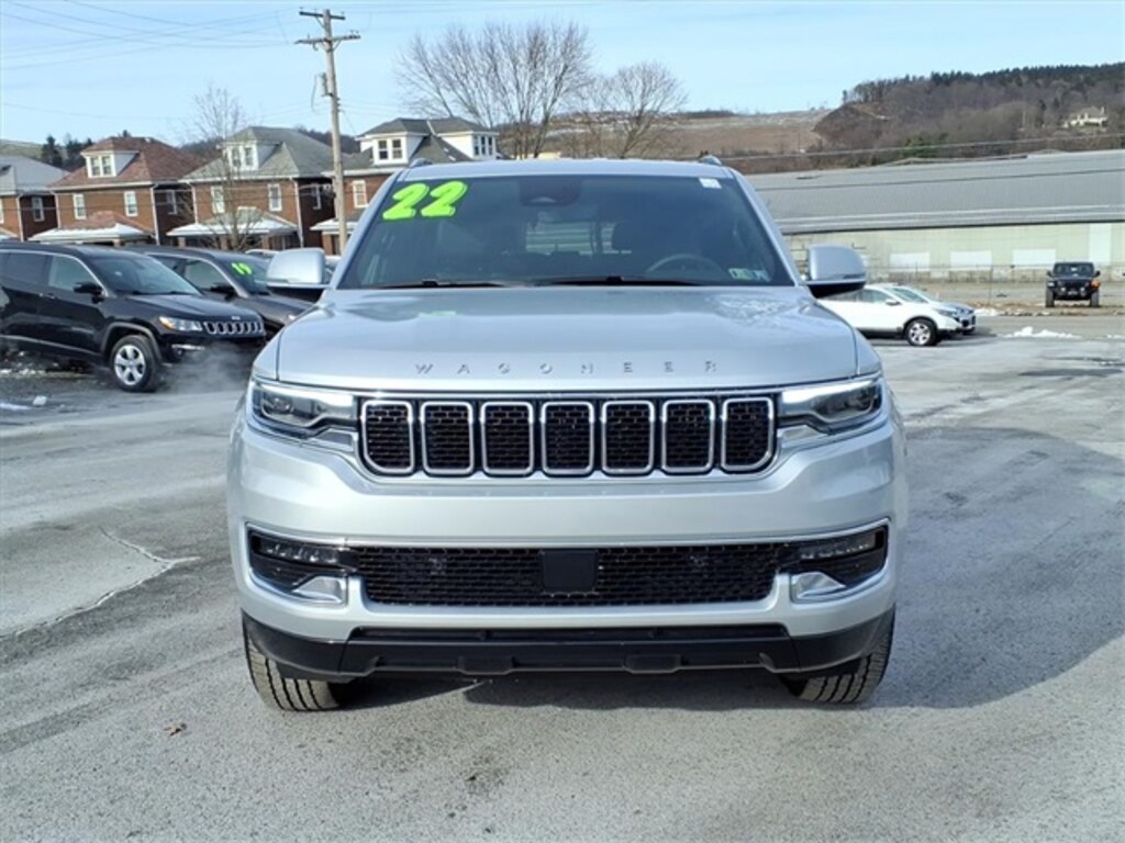 This Wagoneer is well equipped with Quick Order Package 22E, 10 Speakers, 3.21 Rear Axle Ratio, 3rd row seats: bench, 4-Wheel Disc Brakes, ABS brakes, Adjustable pedals, Air Conditioning, Alloy wheels, AM/FM radio: SiriusXM with 360L, Anti-whiplash front head restraints, Audio memory, Auto-dimming door mirrors, Auto-dimming Rear-View mirror, Auto-leveling suspension, Automatic temperature control, Brake assist, Bumpers: body-color, Compass, Delay-off headlights, Driver door bin, Driver vanity mirror, Driver's Seat Mounted Armrest, Dual front impact airbags, Dual front side impact airbags, Electronic Stability Control, Exterior Parking Camera Rear, Four wheel independent suspension, Front anti-roll bar, Front Bucket Seats, Front Center Armrest w/Storage, Front dual zone A/C, Front fog lights, Front reading lights, Fully automatic headlights, Garage door transmitter, Heated door mirrors, Heated front seats, Heated steering wheel, Illuminated entry, Knee airbag, Leather Trimmed Bucket Seats, Low tire pressure warning, Memory seat, Navigation System, Normal Duty Suspension, Occupant sensing airbag, Outside temperature display, Overhead airbag, Overhead console, Panic alarm, Passenger door bin, Passenger seat mounted armrest, Passenger vanity mirror, Pedal memory, Power adjustable front head restraints, Power door mirrors, Power driver seat, Power Liftgate, Power passenger seat, Power steering, Power windows, Radio data system, Radio: Uconnect 5 Nav w/10.1" Display, Rear air conditioning, Rear anti-roll bar, Rear dual zone A/C, Rear reading lights, Rear seat center armrest, Rear window defroster, Rear window wiper, Reclining 3rd row seat, Remote keyless entry, Security system, Speed control, Speed-sensing steering, Speed-Sensitive Wipers, Split folding rear seat, Steering wheel memory, Steering wheel mounted audio controls, Tachometer, Telescoping steering wheel, Tilt steering wheel, Traction control, Trip computer, Turn signal indicator mirrors, Variably intermittent wipers, Ventilated front seats, Voltmeter, and Wheels: 18" x 8.0" Aluminum Base Finish.